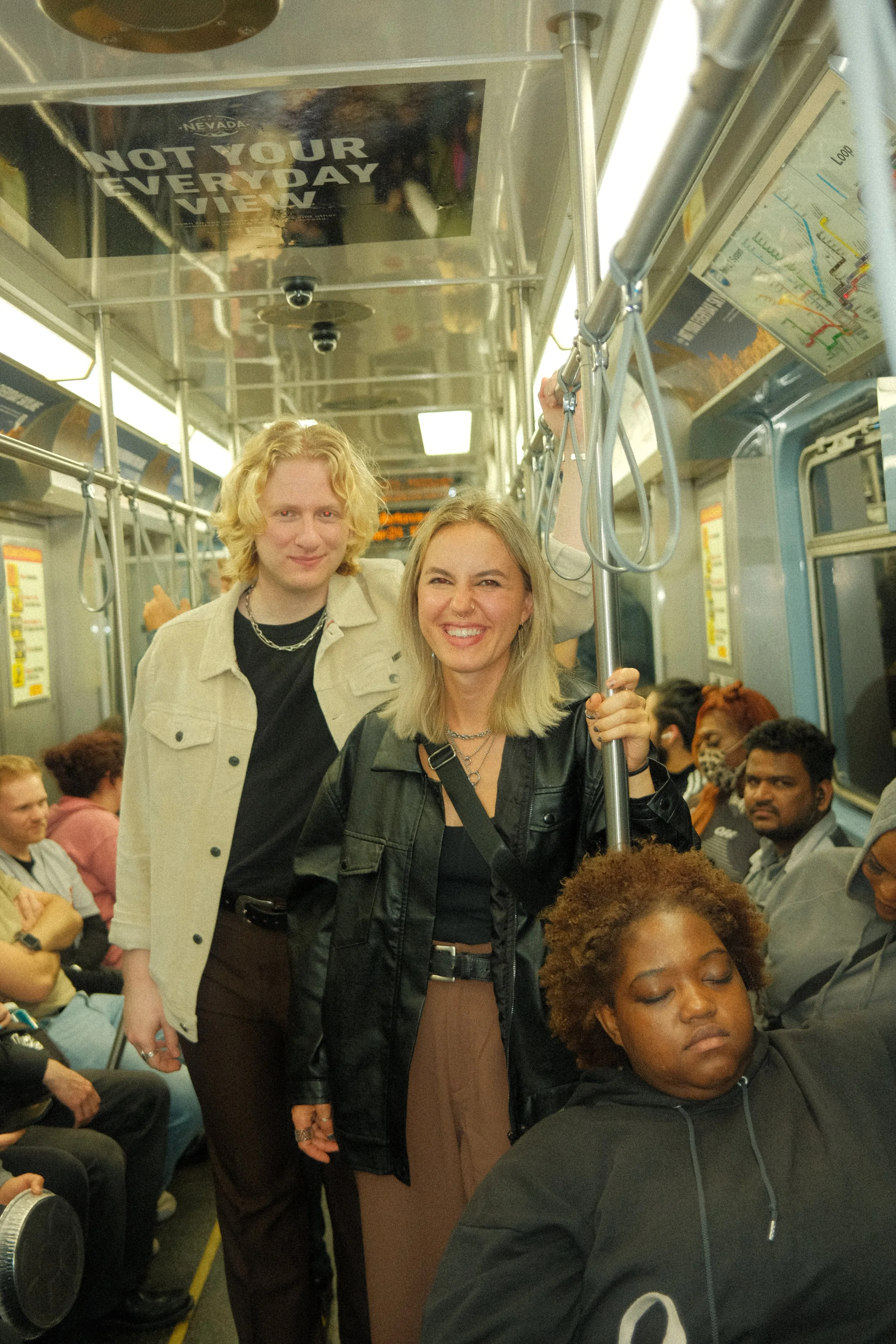 On the train, I spotted what I assumed was a couple, looking cool and fashionable. I walked up and asked if I could take their portrait. We talked the entire ride, and I invited them to the club with us. They took my number and said they’d let us know later, but I figured we wouldn’t hear from them again.